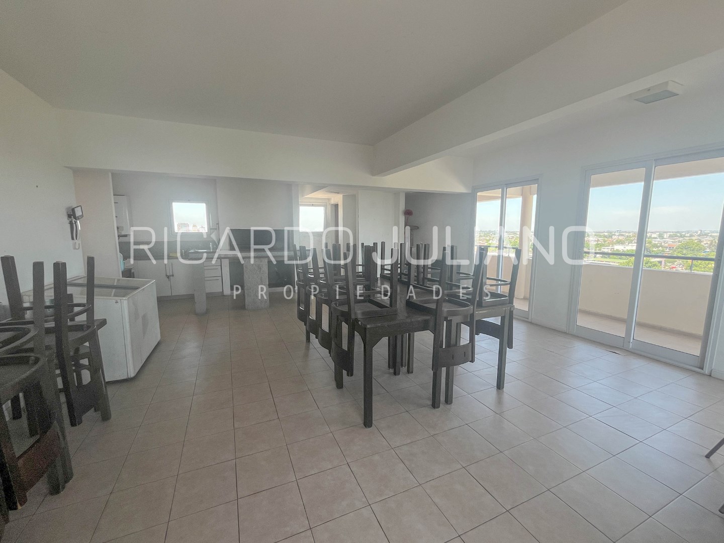 Departamento ubicado en el octavo piso con una hermosa vista abierta tanto al norte como al sur, brindando buena iluminación y ventilación natural a lo largo del día. Al ingresar, encontramos un living comedor el cual tiene una división tipo tabique con puerta corrediza que genera un segundo dormitorio u escritorio. Balcón con vista al Norte. Cocina independiente íntegramente amoblada con muebles de bajo mesada y alacenas. Artefacto de cocina y calefón a gas. Mediante un hall de distribución se ubica el baño completo y el dormitorio con placard el cual tiene salida al segundo balcón. El departamento cuenta con calefacción por estufa y 2 equipos de aire acondicionado split. En planta baja, cochera cubierta con ingreso mediante portón automático. En el último piso, podemos disfrutar de una hermosa terraza junto a un SUM equipado con parrilla, heladera, cocina, mesas, sillas y todo para reuniones más numerosas.